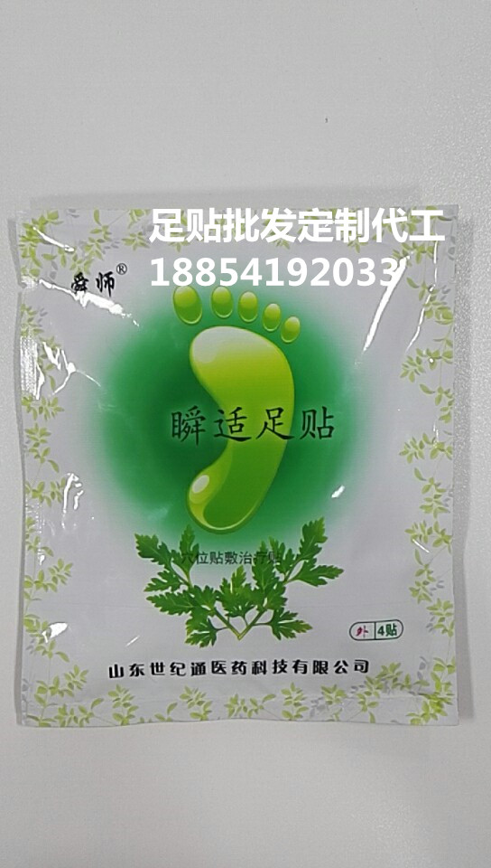 山東世紀(jì)通醫(yī)藥科技有限公司有這國(guó)內(nèi)一流的生產(chǎn)線,專業(yè)的生產(chǎn)技術(shù)及研發(fā)團(tuán)隊(duì),中藥足貼按穴位貼敷,足貼有艾草,生產(chǎn)等秘制而成,足貼可以排毒美容養(yǎng)顏,緩解疲勞,瘦身美體,中藥穴位給藥足底穴位將體內(nèi)的濕氣、毒素從足下排出,可以舒緩緊張,改善疲勞現(xiàn)象,改善睡眠、皮膚及亞健康問(wèn)題,不可思議的神奇效果,安全綠色對(duì)身體沒(méi)有任何副作用