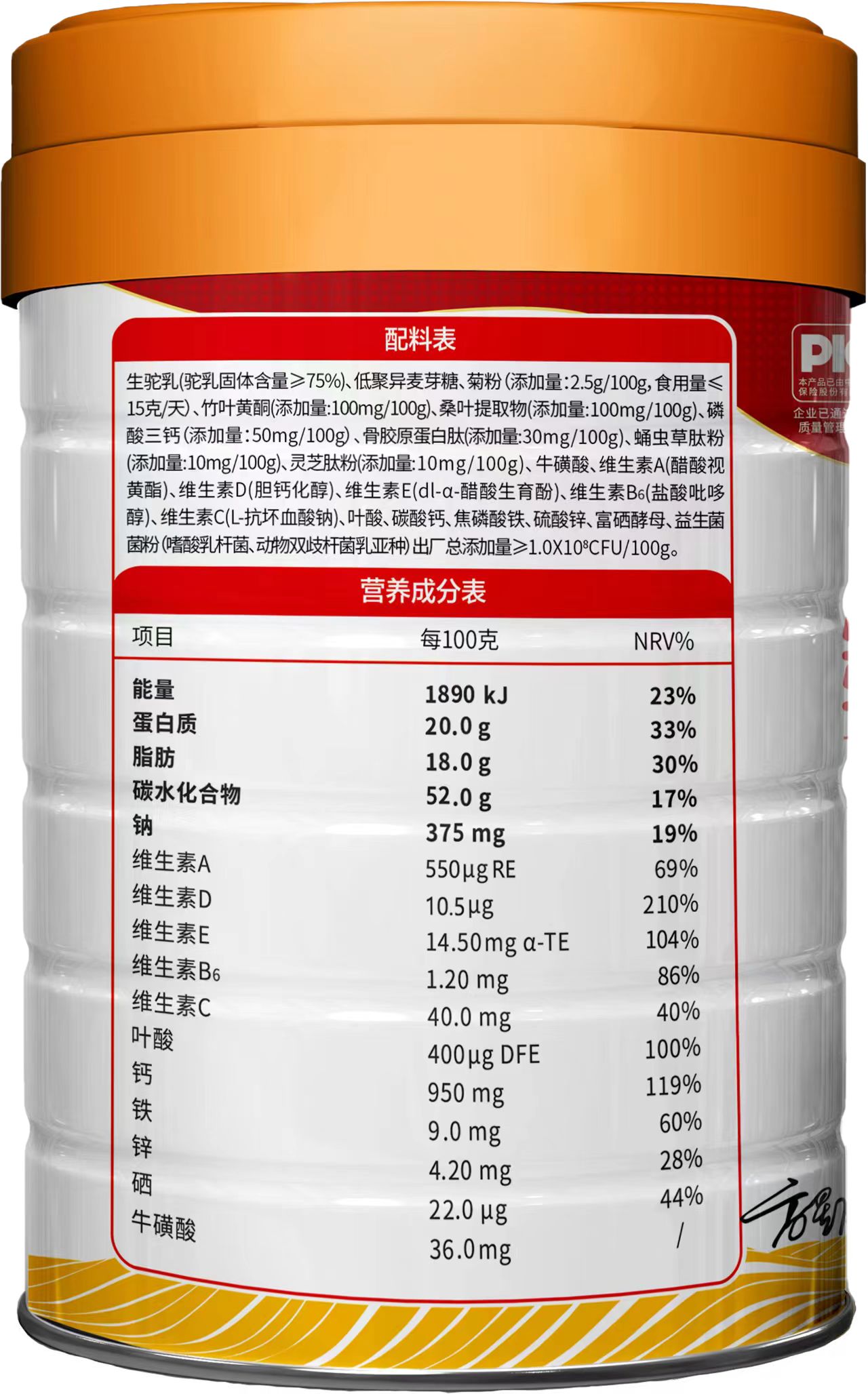 【產(chǎn)品名稱】:乳滋元多肽雙鈣配方駝乳粉