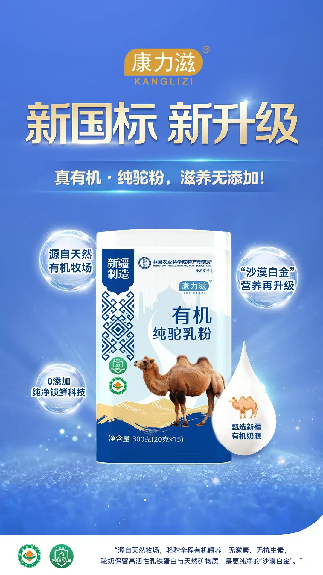 【產(chǎn)品名稱(chēng)】:康力滋有機(jī)純駝乳粉